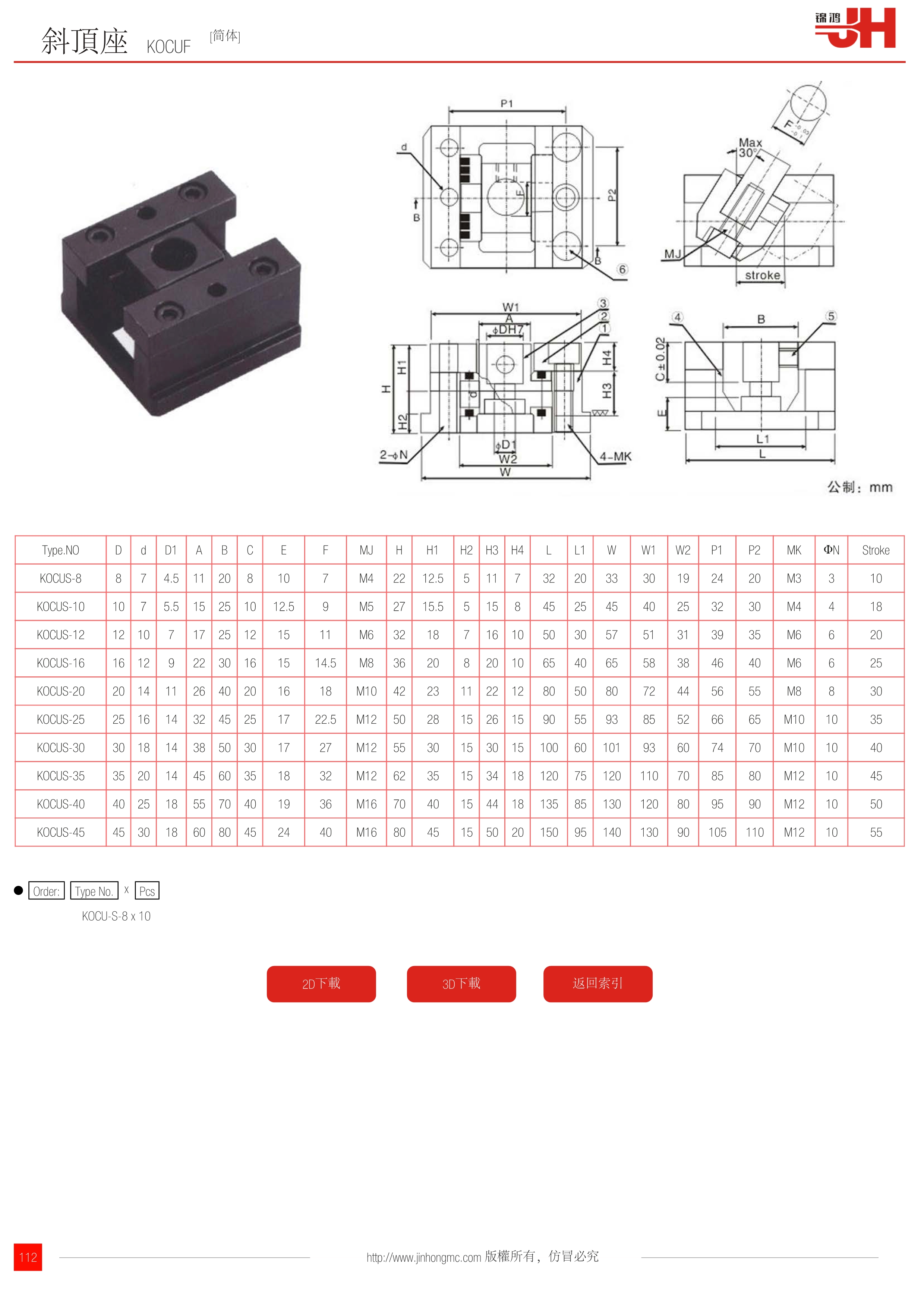 | KOCUS-35 | 35 | 20 | 14 | 45 | 60 | 35 | 18 | 32 | M12 | 62 | 35 | 15 | 34 | 18 | 120 | 75 | 120 | 110 | 70 | 85 | 80 | M12 | 10 | 45 |