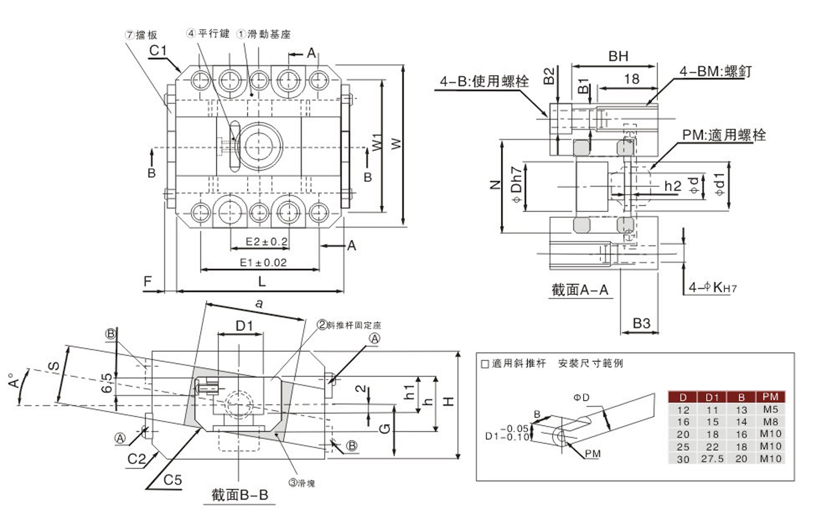 | 2 | 斜推桿固定座 | Inclined pin holder | SCM440 | 1 |