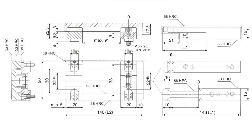 ※ 注意事項 :在模具加工中,必須計算相同的行程對稱安裝,否則會導致單套鎖模扣受力不平衡, 導致組件斷裂 。