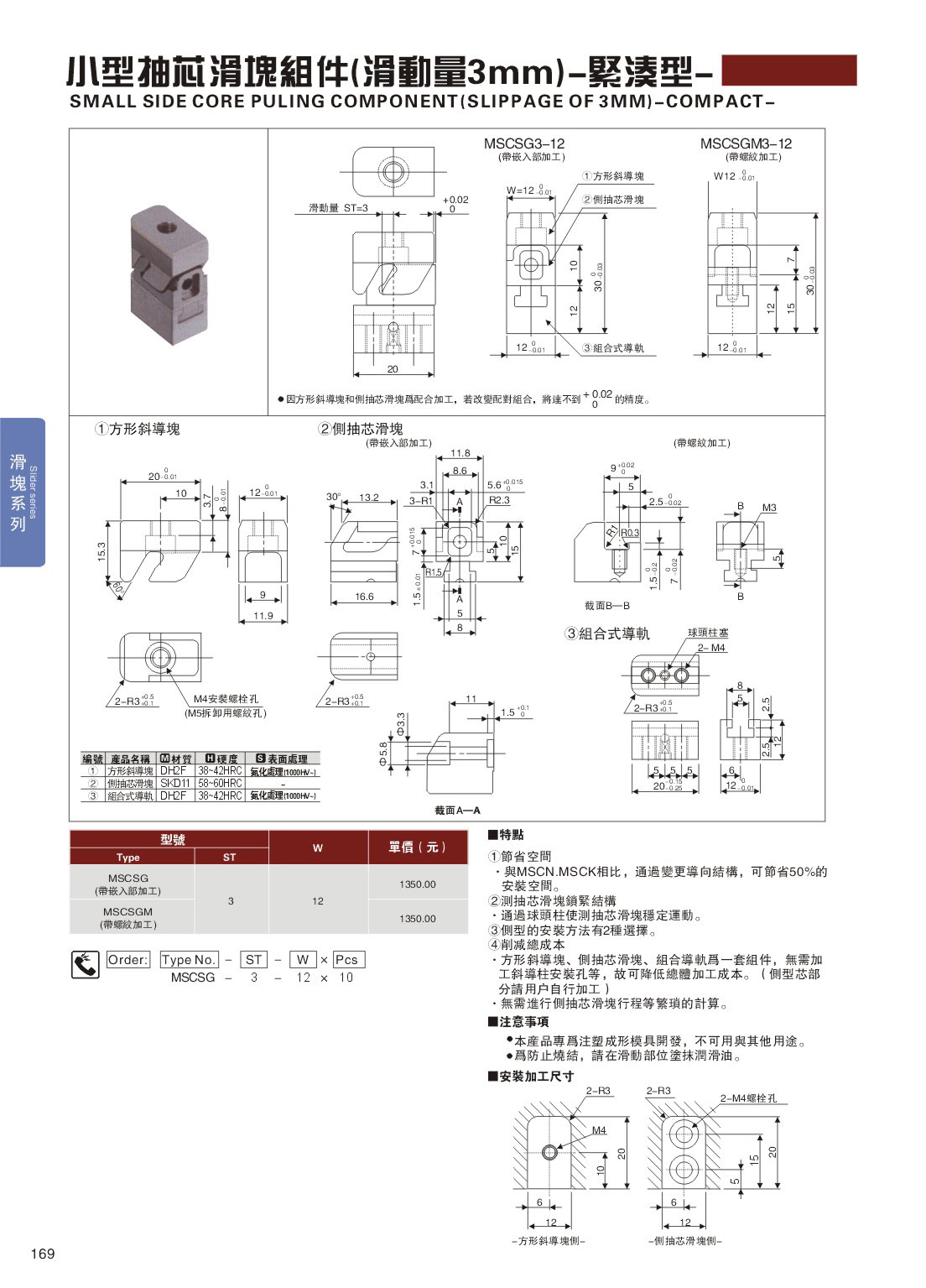 訂購:169-小型側抽芯滑塊組件(滑動量3mm)-緊湊型 MSCSG