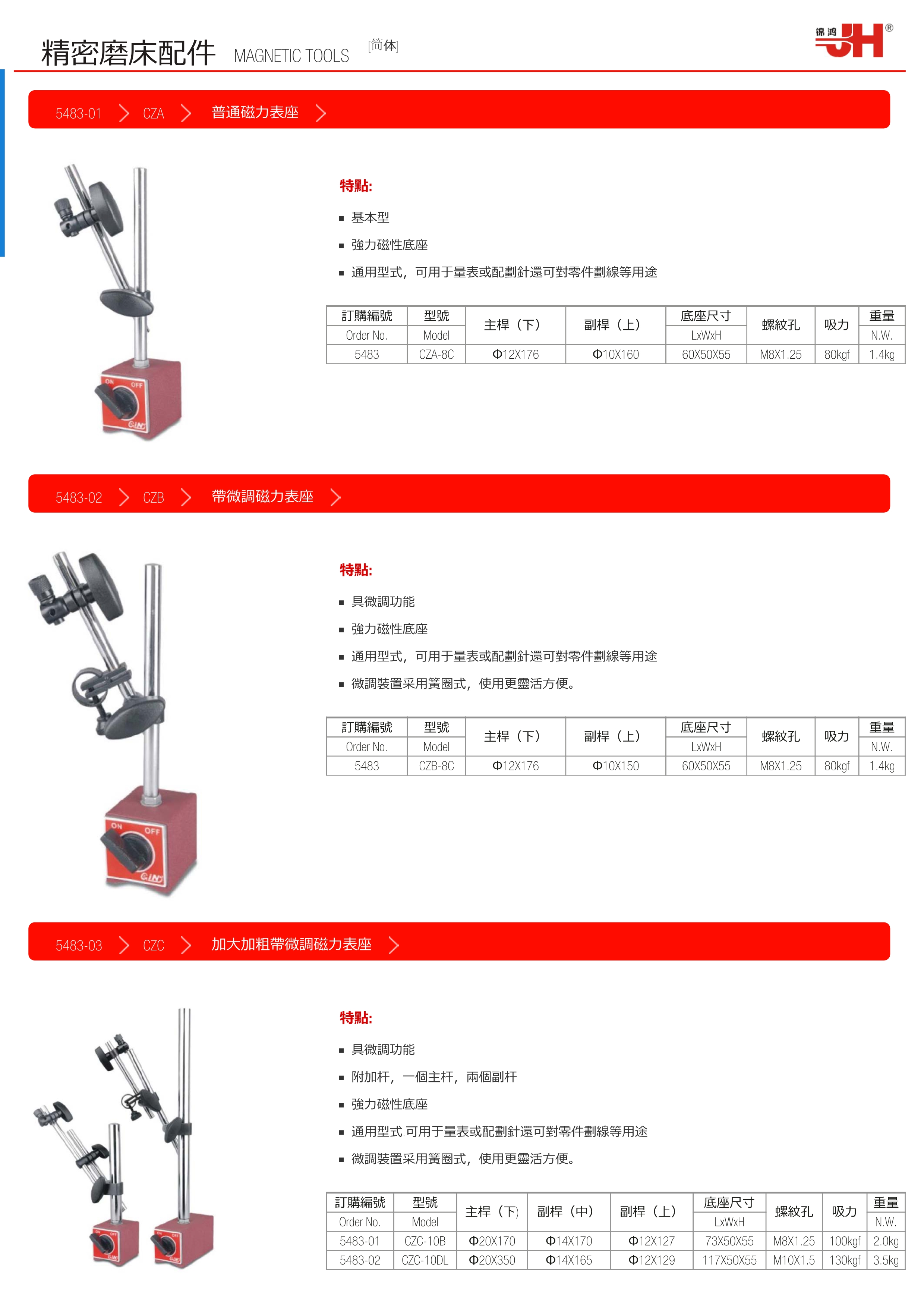 | 5483-01 | CZC-10B | Φ20X170 | Φ14X170 | Φ12X127 | 73X50X55 | M8X1.25 | 100kgf | 2.0kg |