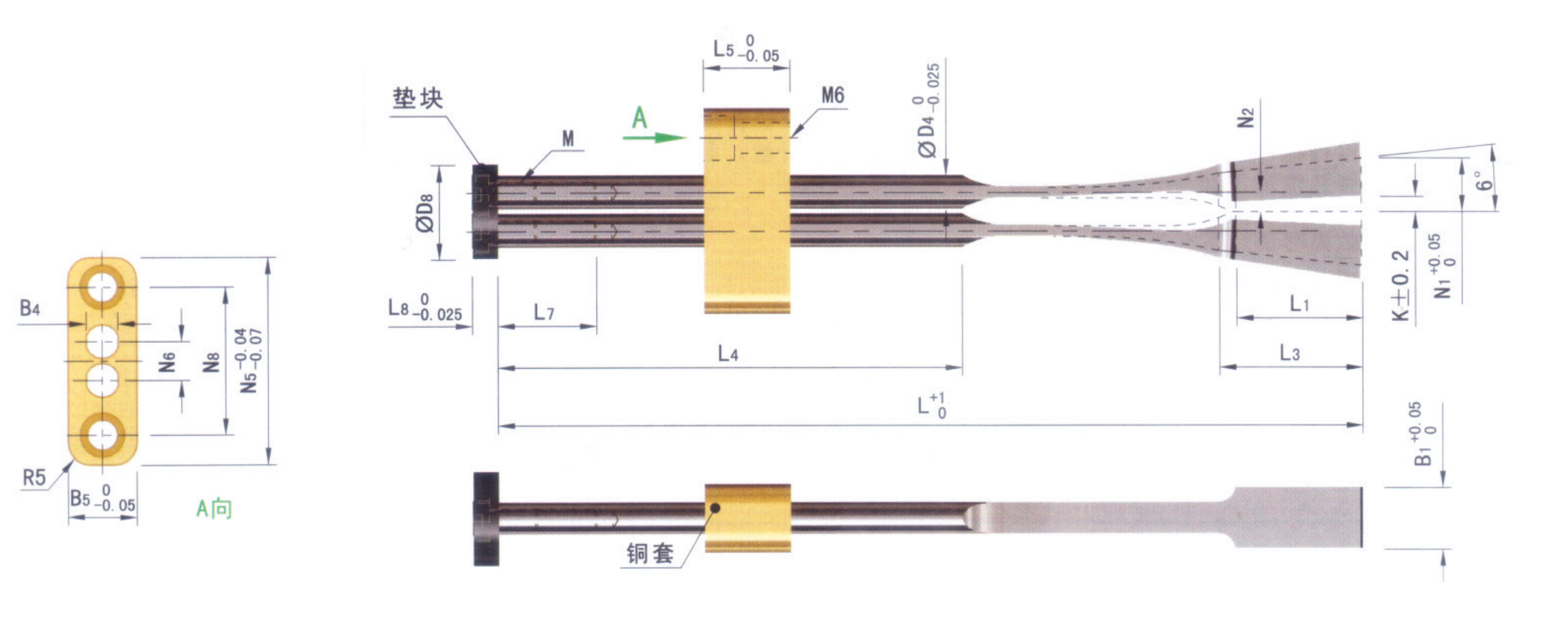 3.此款彈弓頂針所有型號都配有墊塊、銅套以及安裝螺絲;