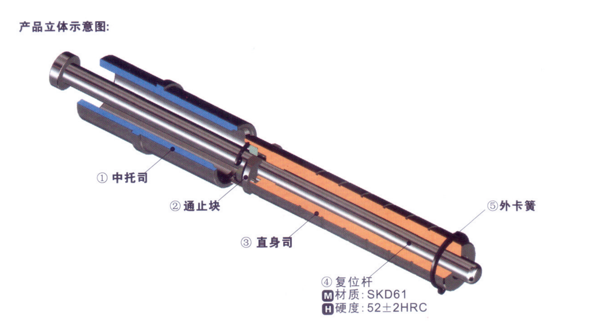 確保復位推桿準確裝入直身司的前端部分,請注意如錯位將導致模具損壞;
