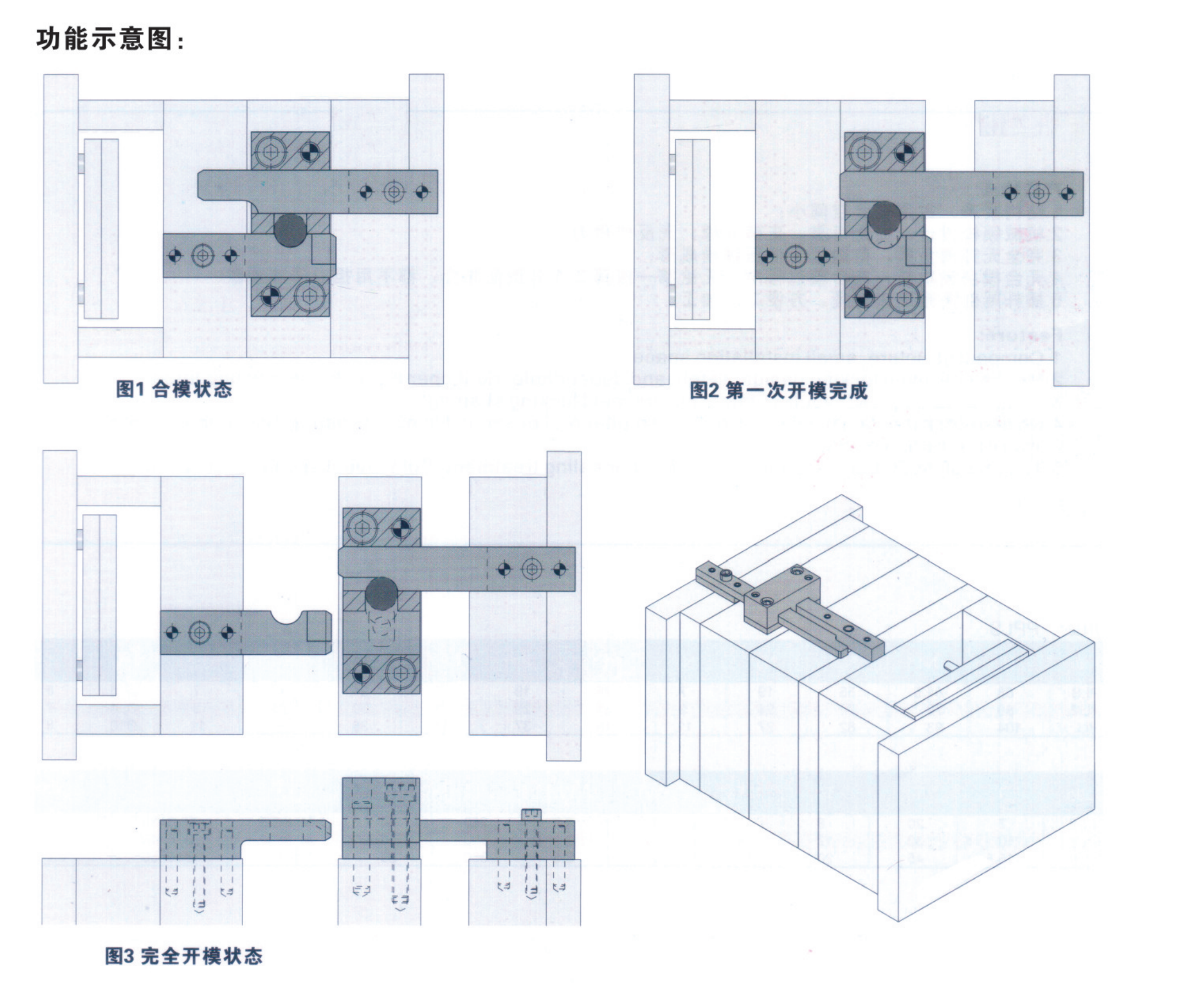 安裝插桿,將插桿與墊塊截成所需要長(zhǎng)度,以實(shí)物為準(zhǔn)配做螺孔及銷釘并垂直于分 型面安裝,(注意:保證安裝幾套鎖??坶_模行程一致,避免受力不平衡而損壞鎖 模扣);