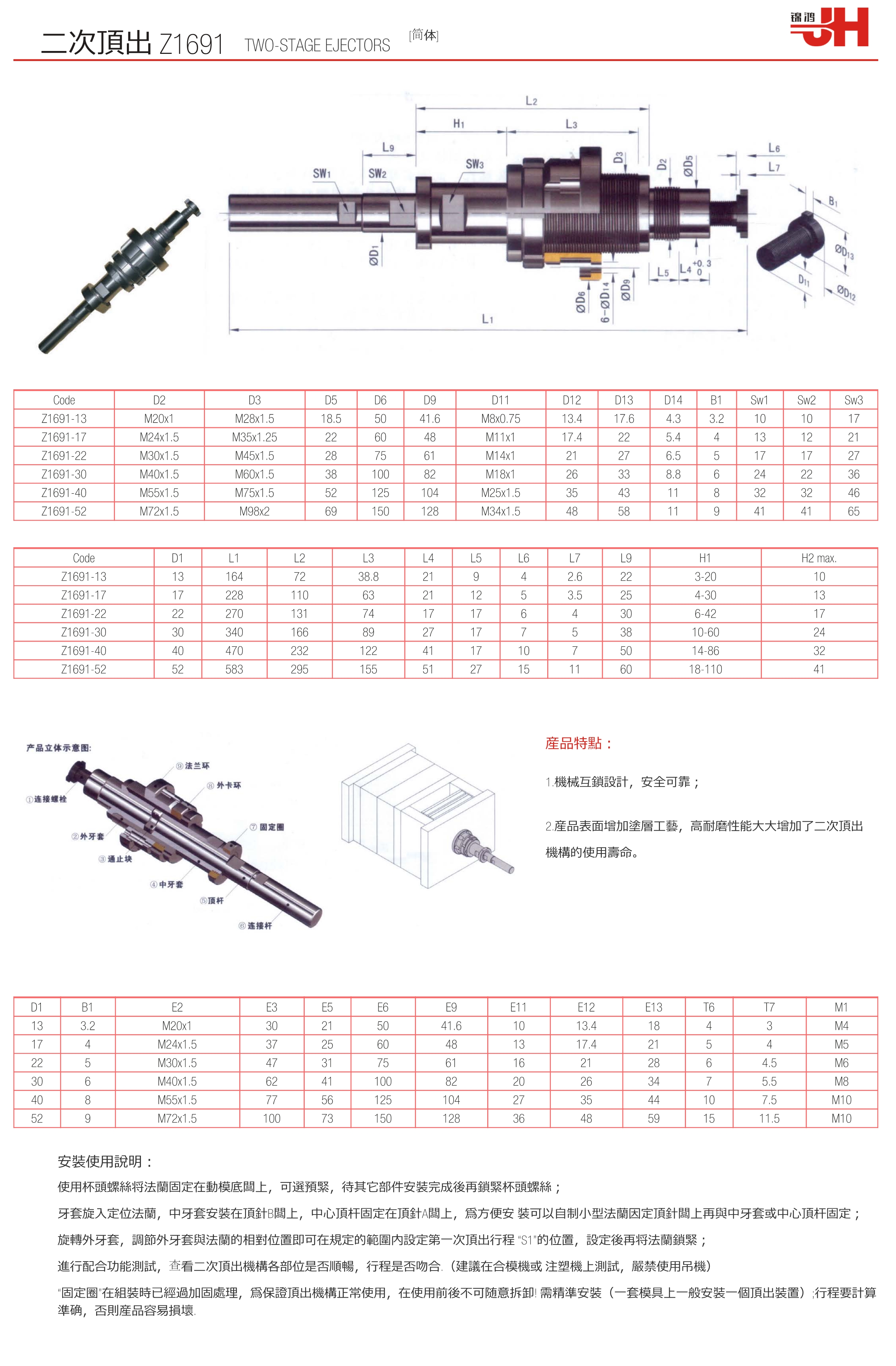 “固定圈”在組裝時(shí)已經(jīng)過(guò)加固處理,為保證頂出機(jī)構(gòu)正常使用,在使用前后不可隨意拆卸! 需精準(zhǔn)安裝(一套模具上一般安裝一個(gè)頂出裝置);行程要計(jì)算準(zhǔn)確,否則產(chǎn)品容易損壞.