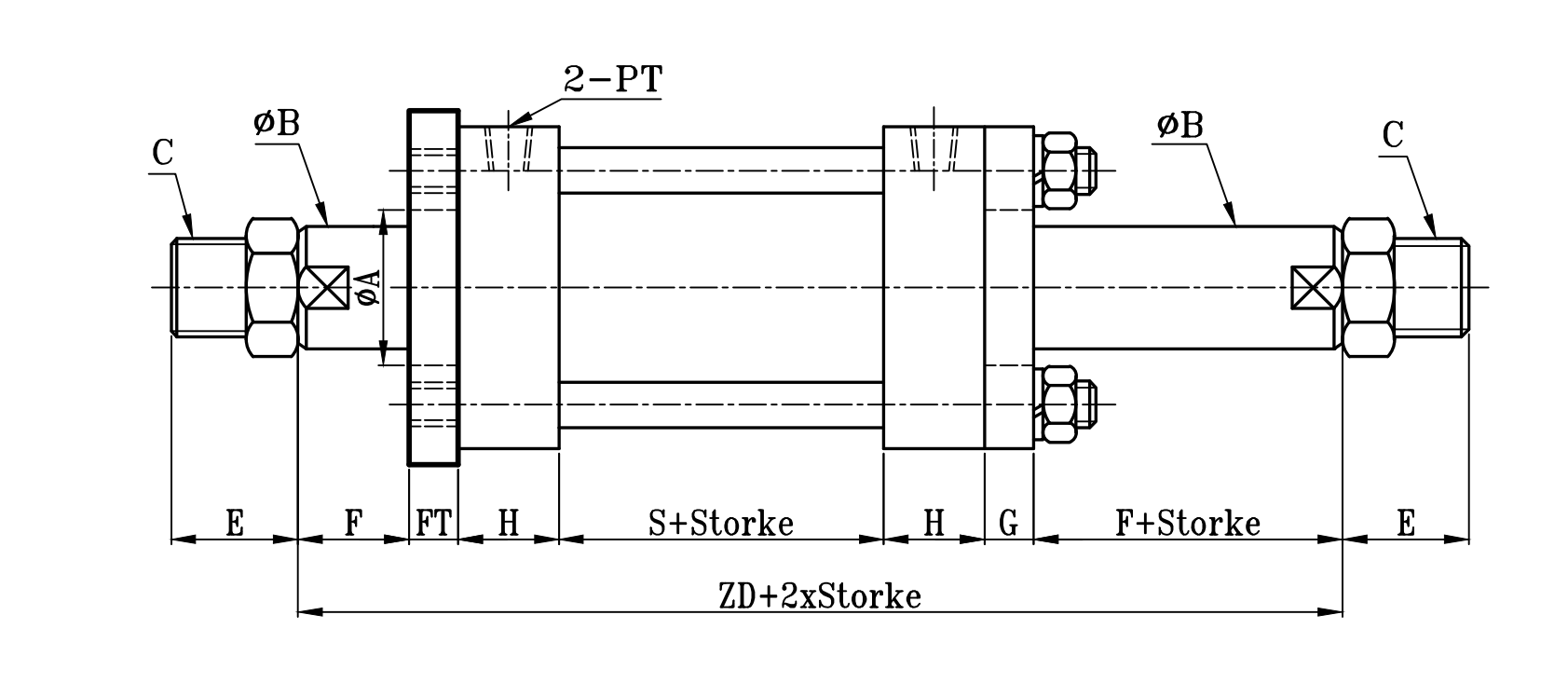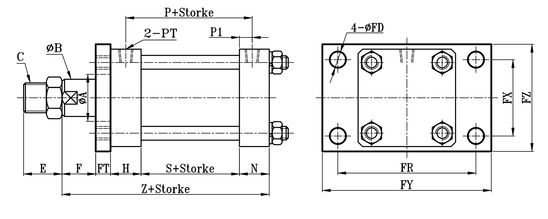 方型重型油壓缸FA板尺寸圖 14Mpa Hydraulic Cylinders FA Dimensional Features