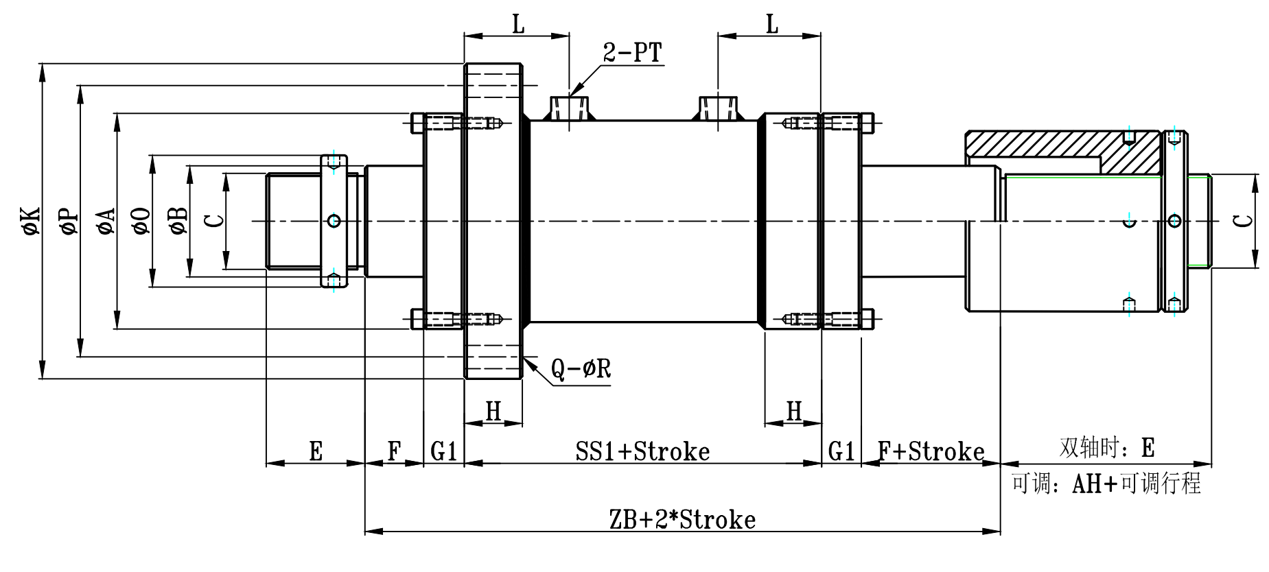 | 缸徑 BORE | ΦA(chǔ) | ΦB | C | L | H | ΦI | ΦK | ΦP | Φ0 | E | F | G1 | SS | SS1 | ZA | ZB | AH | Q | ΦR | PT |
