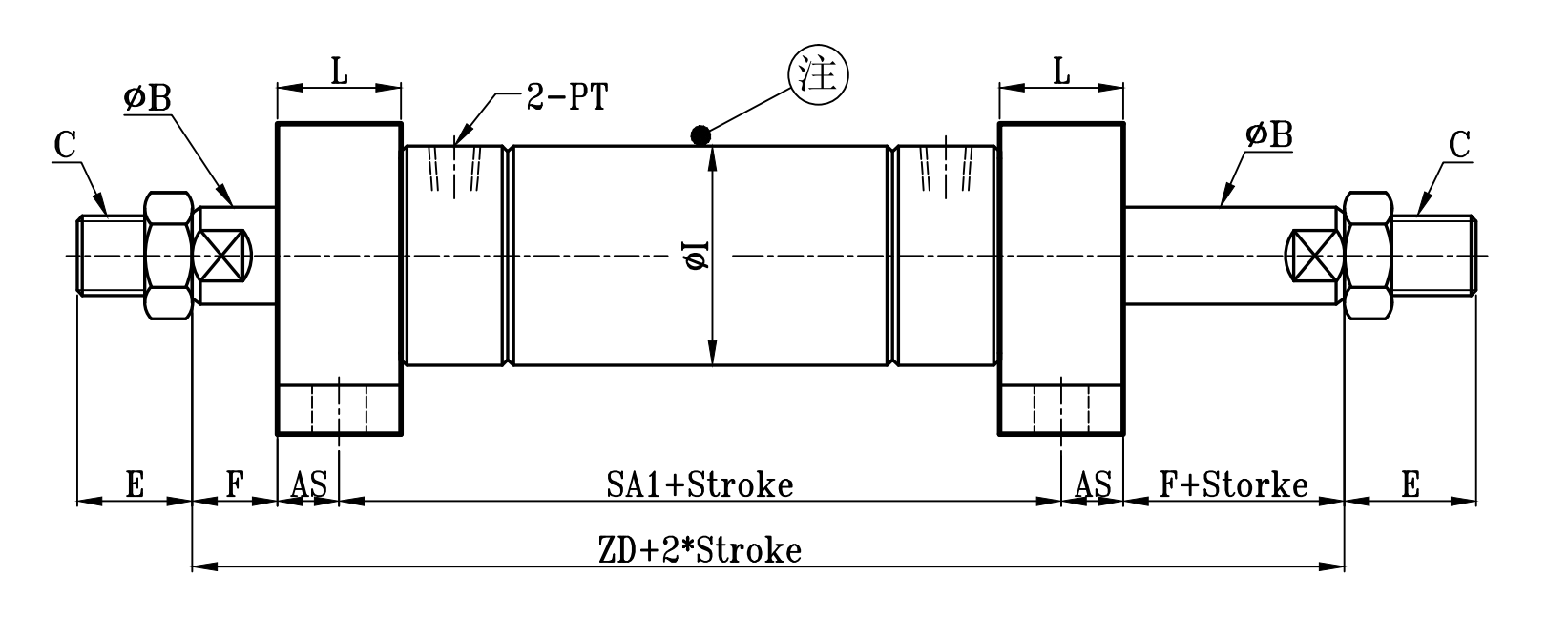 注:感應油缸時,不論是單軸還是雙軸缸,缸筒長度的選擇均為雙軸缸的缸筒長度