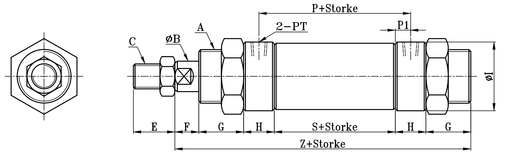H/I:H、I(H槽、內牙全系共用)TYPE | 小型圓型低壓油壓缸尺寸圖 7Mpa S0 series Dimensional Features |
