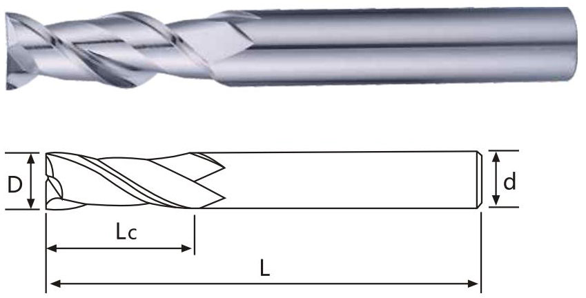 | 商品編號 Product number | 刃徑(D) Blade diameter | 刃長(Lc) Blade length | 柄徑(d) Shank diameter | 全長(L) Overall length | 刃數 Flute |