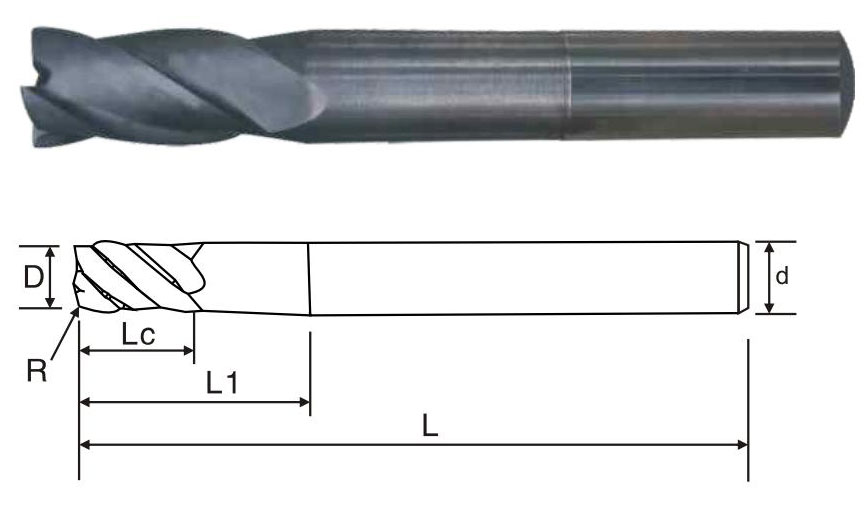 | 商品編號(hào) Product number | 刃徑(D) Blade diameter | R角 R angle | 刃長(zhǎng)(Lc) Blade length | 柄徑(d) Shank diameter | 全長(zhǎng)(L) Overall length | 刃數(shù) Flute |