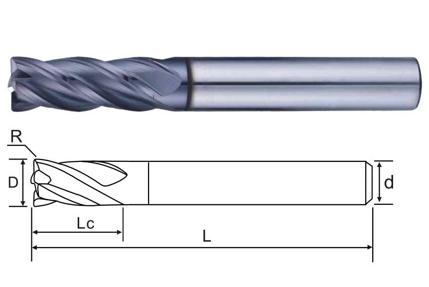 | 商品編號 Product number | 刃徑(D) Blade diameter | R角 R angle | 刃長(Lc) Blade length | 柄徑(d) Shank diameter | 全長(L) Overall length | 刃數(shù) Flute |