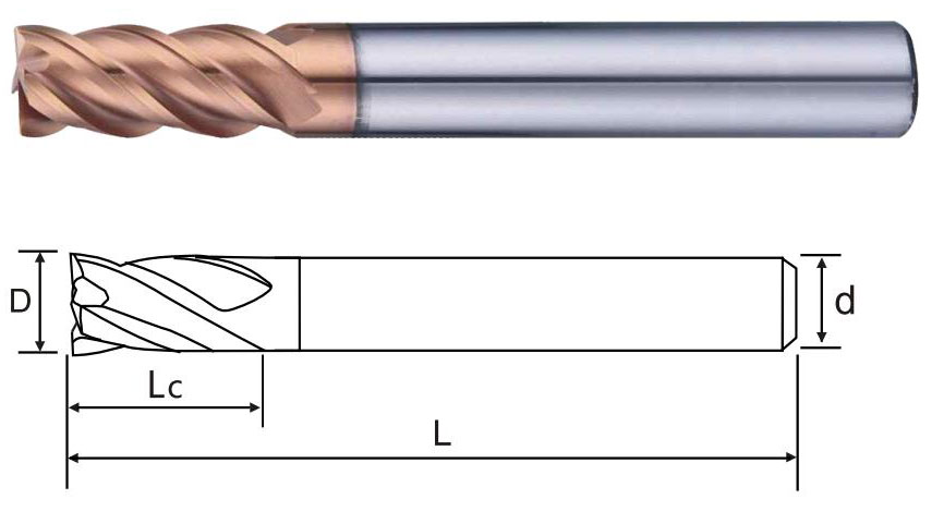 | 商品編號 Product number | 刃徑(D) Blade diameter | 刃長(Lc) Blade length | 柄徑(d) Shank diameter | 全長(L) Overall length | 刃數 Flute |