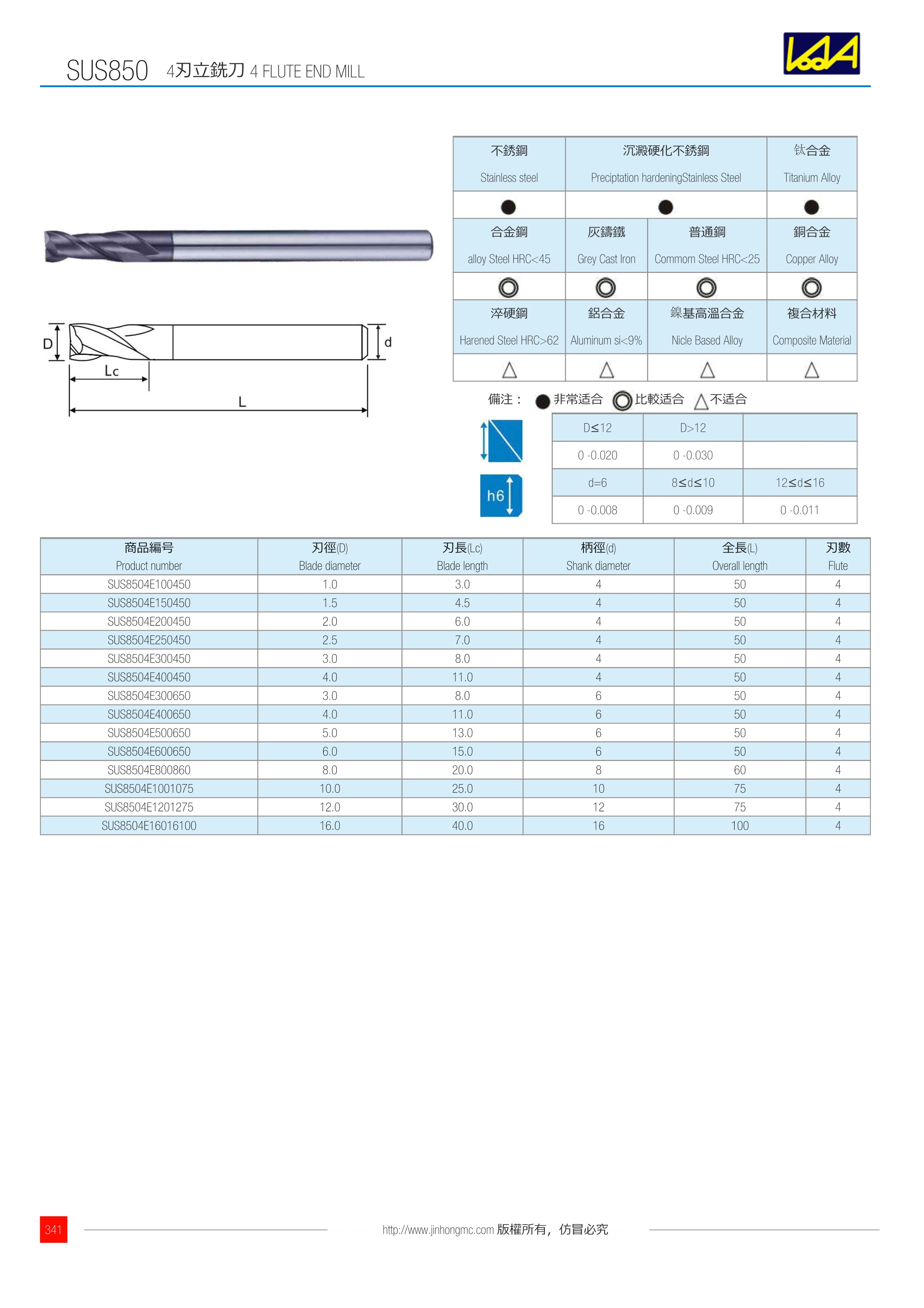 | 合金鋼 alloy Steel HRC<45 | 灰鑄鐵 Grey Cast Iron | 普通鋼 Commom Steel HRC<25 | 銅合金 Copper Alloy |