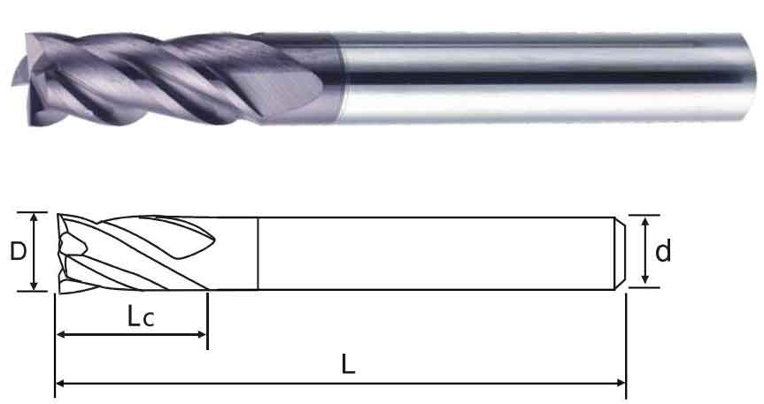 | 商品編號 Product number | 刃徑(D) Blade diameter | 刃長(Lc) Blade length | 柄徑(d) Shank diameter | 全長(L) Overall length | 刃數 Flute |